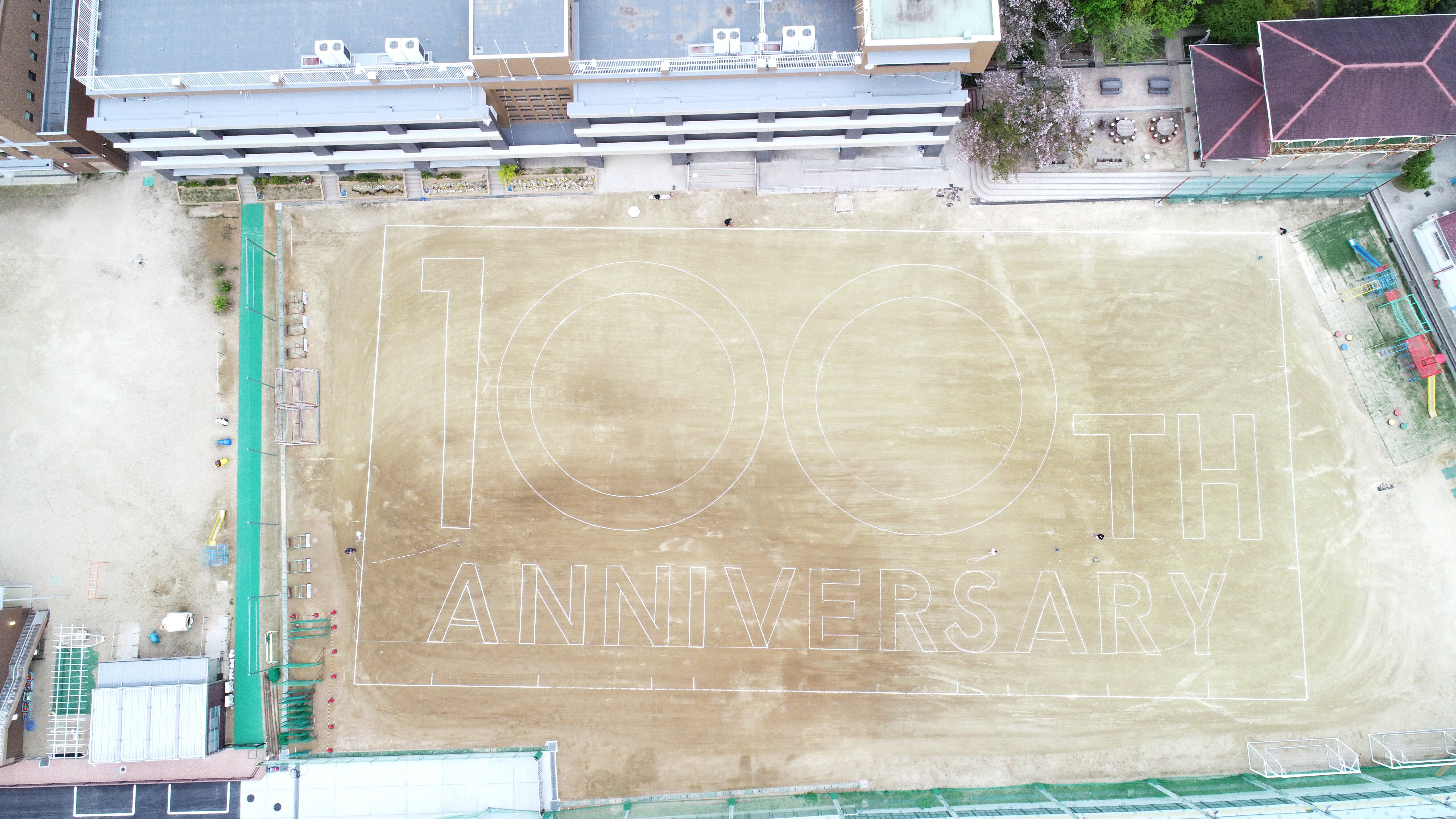 - 100周年記念をドローンで空撮|人文字撮影の事例紹介(大阪・関西)